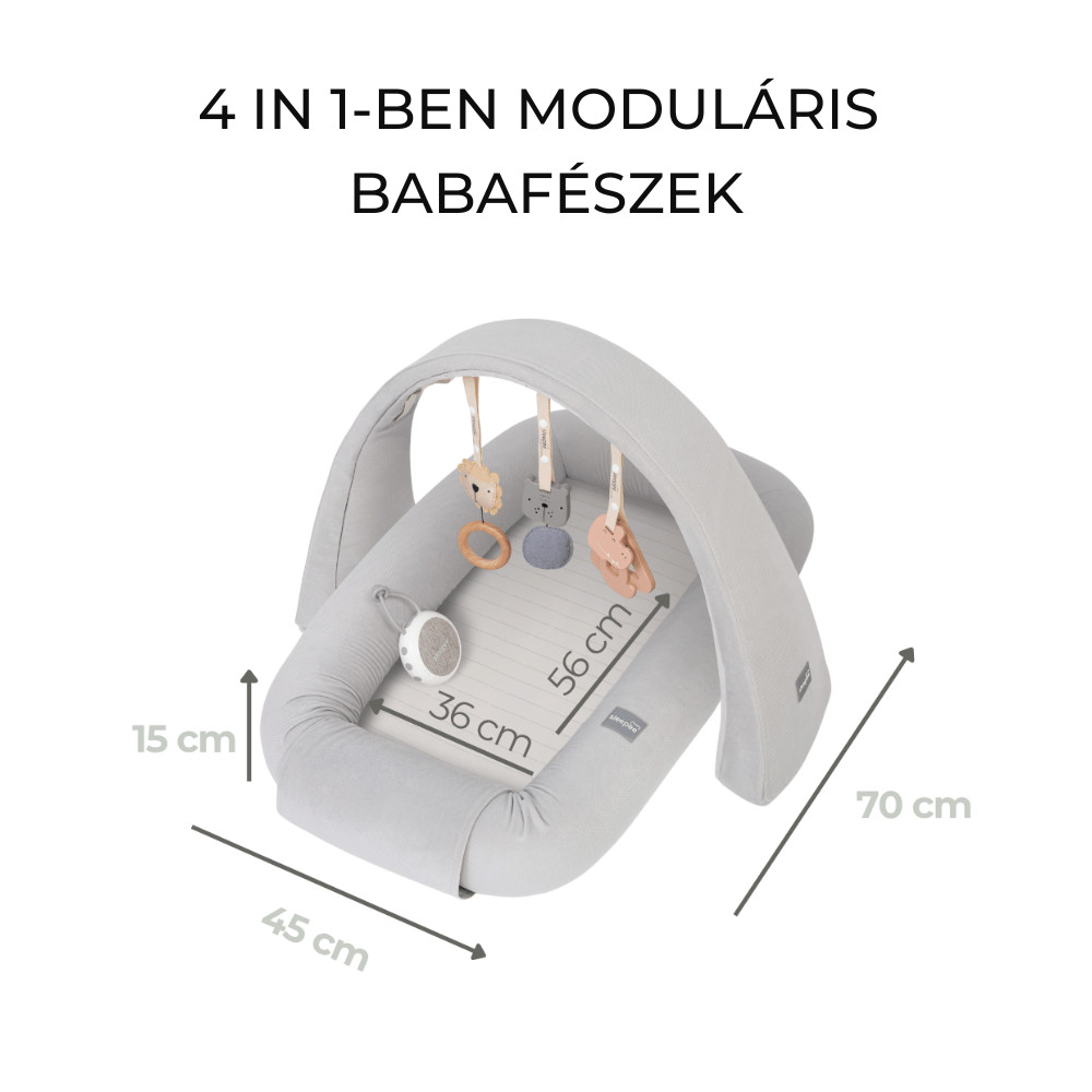 Ez nem egy szokványos babafészek. Ez egy innovatív, 4 az 1-ben megoldás, amely ötvözi a biztonságot, a fejlődést és a kényelmet – mindezt egy gyönyörűen megtervezett szettben. Olyan terméket alkottunk, amely együtt nő a babáddal, és igazodik a napi ritmusotokhoz – alvástól a játékon át egészen a megnyugtató pillanatokig.