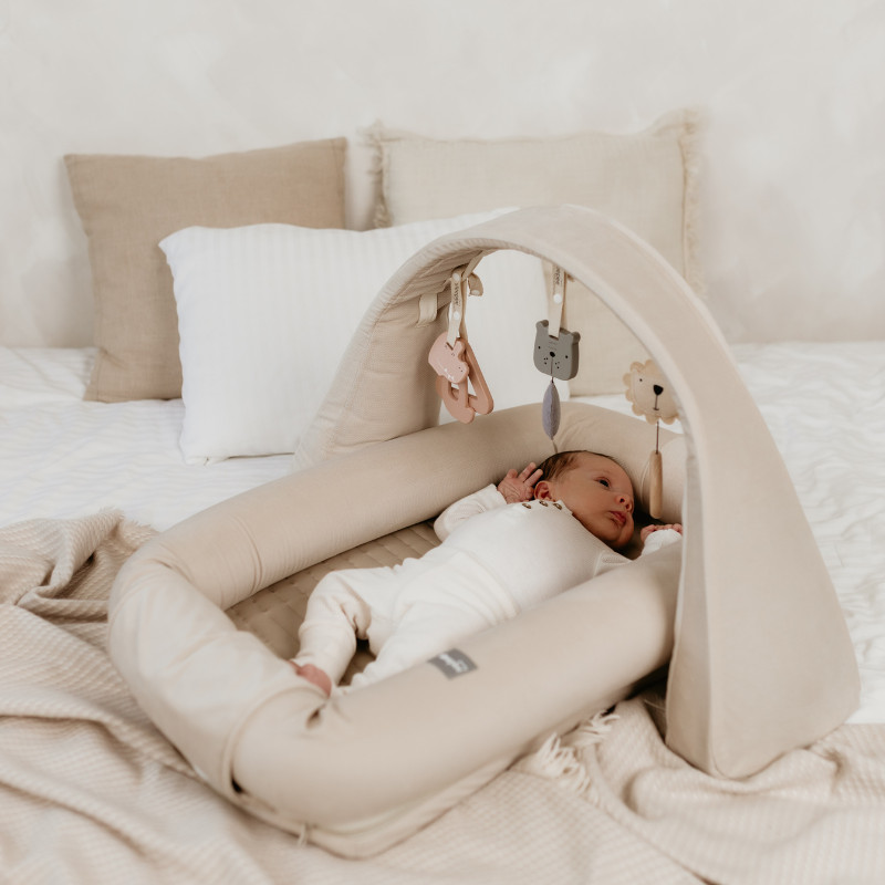 Az összes játék állítható szalagokon lóg, így tökéletesen a baba életkorához és igényeihez igazíthatók. Újszülöttek számára ideális, ha a játékokat a hasuk szintjében helyezed el – így megfigyelhetik és elérhetik őket anélkül, hogy meg kellene emelniük a fejüket, ezzel támogatva a gerinc és a nyak egészséges fejlődését.