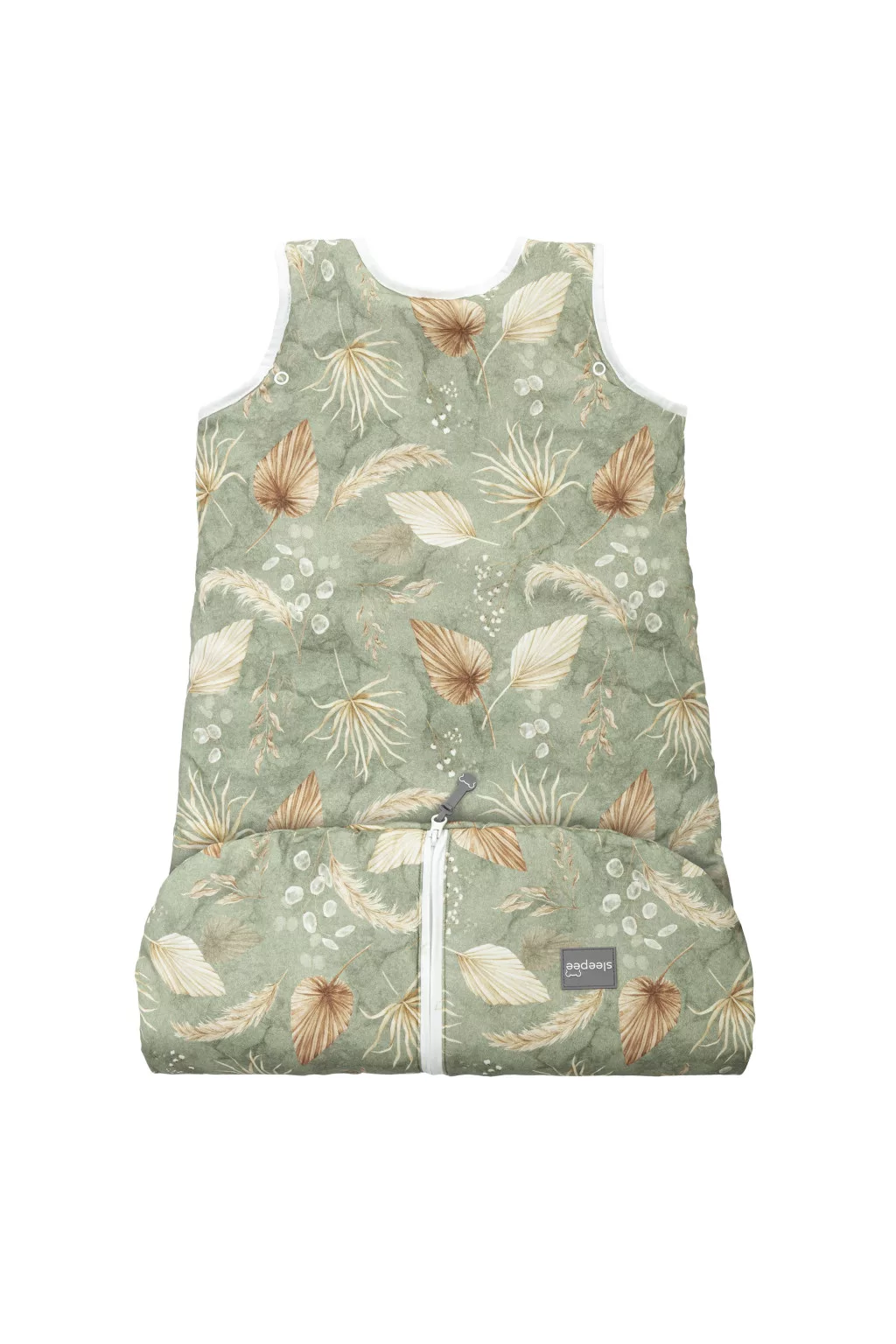 Sleepee Grow Up állítható baba hálózsák 0-24 hó, bélelt pamut, zöld leveles (Bohemian Green) minta (2.5 TOG)