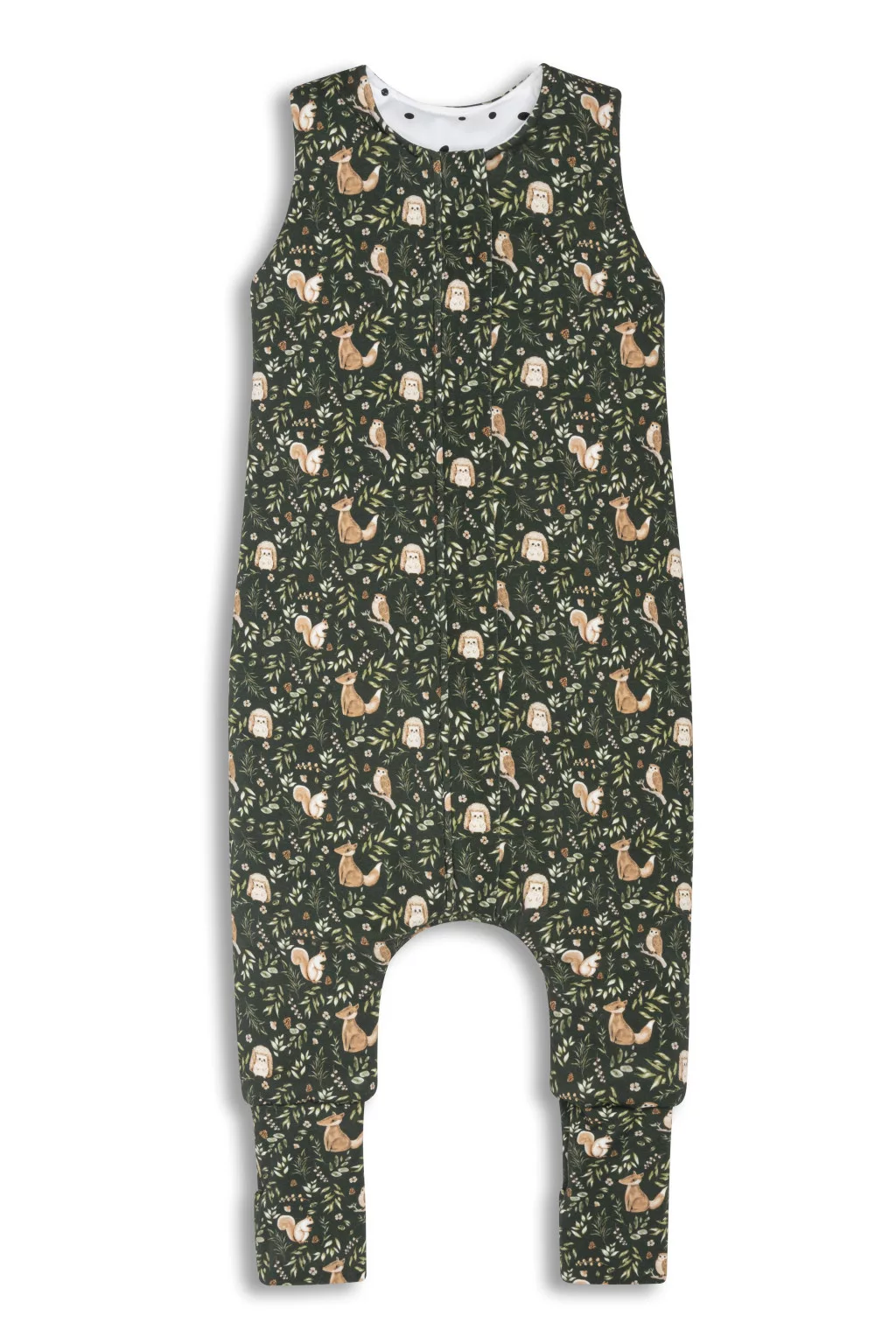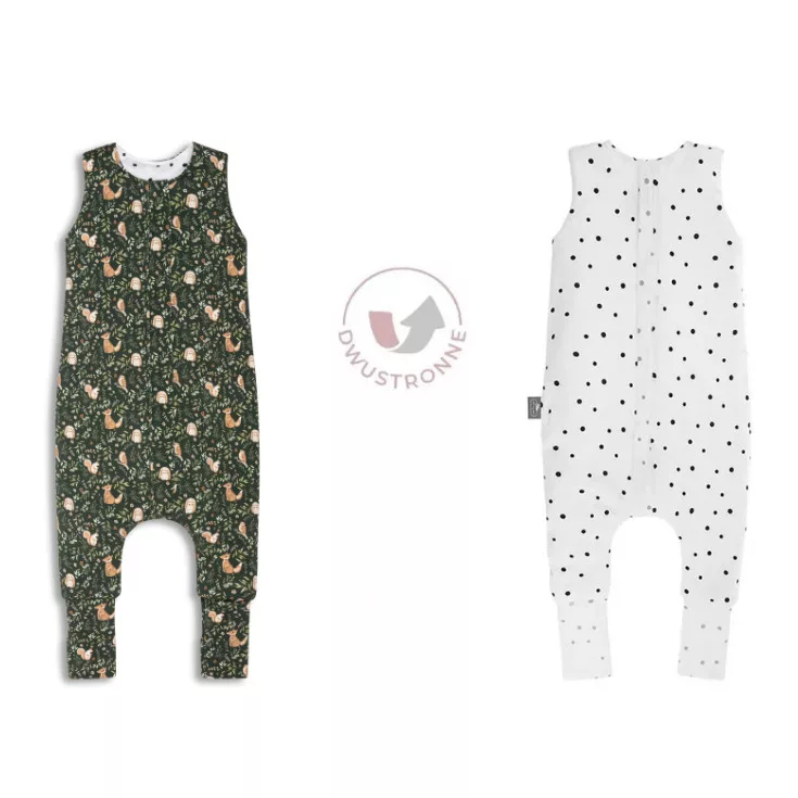 Sleepee kifordítható téli tipegő baba hálózsák 1-2 év (S), pamut borítás, sötétzöld Green Forest és pöttyös minta (2.5 TOG)
