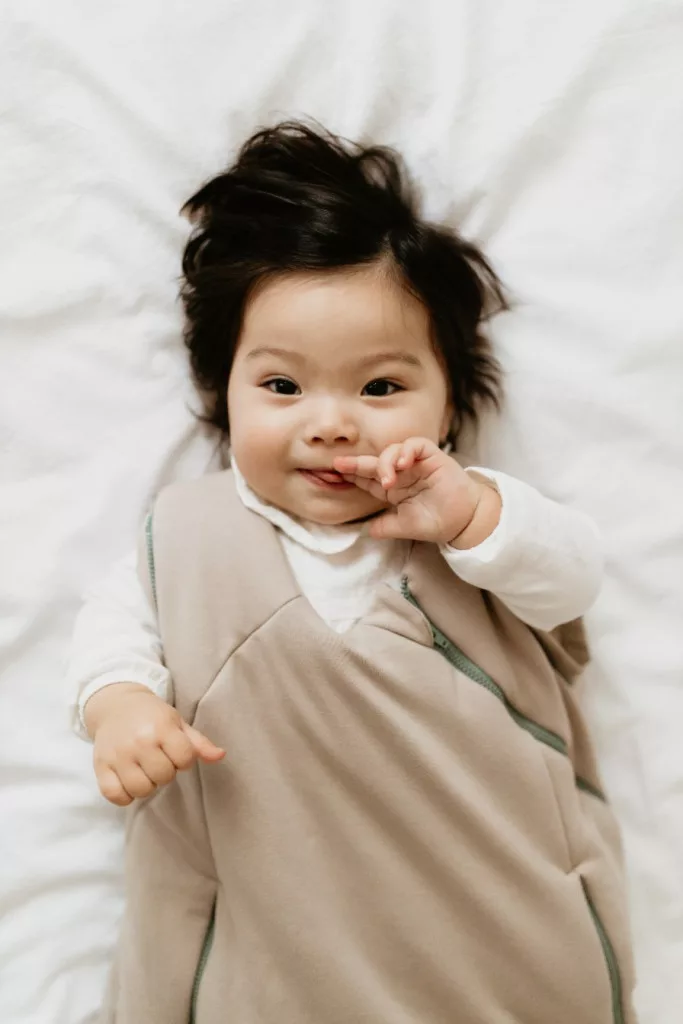 Puha, természetes és légáteresztő anyagokból készült, amelyek megfelelő hőszigetelést biztosítanak és fenntartják a gyermeked természetes hőmérsékletét. Ez megvédi a babát a hűvöstől, ami megkönnyíti a nyugodt és zavartalan alvást.