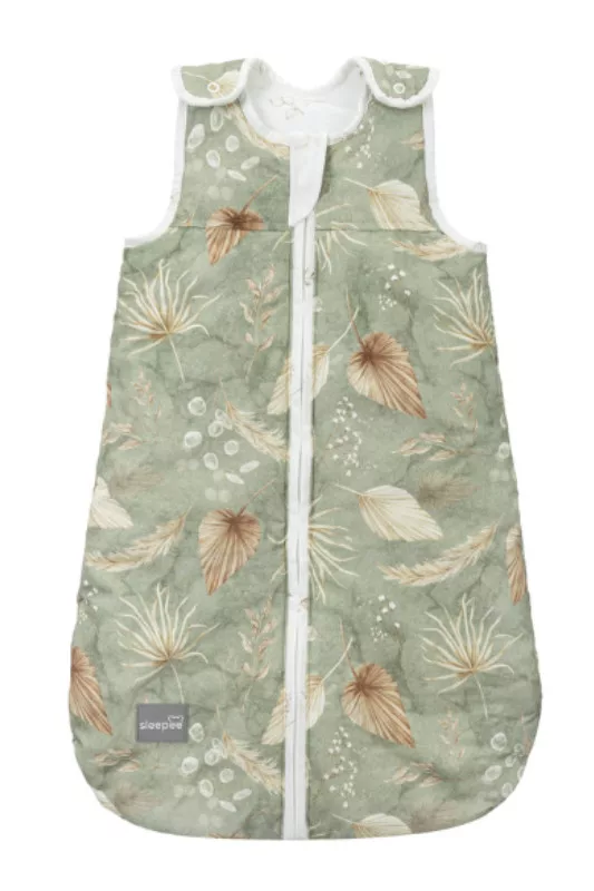 Sleepee NewBorn újszülött hálózsák 0-4 hó, bélelt pamut, zöld leveles (Bohemian Green) mintával (2.5 TOG)