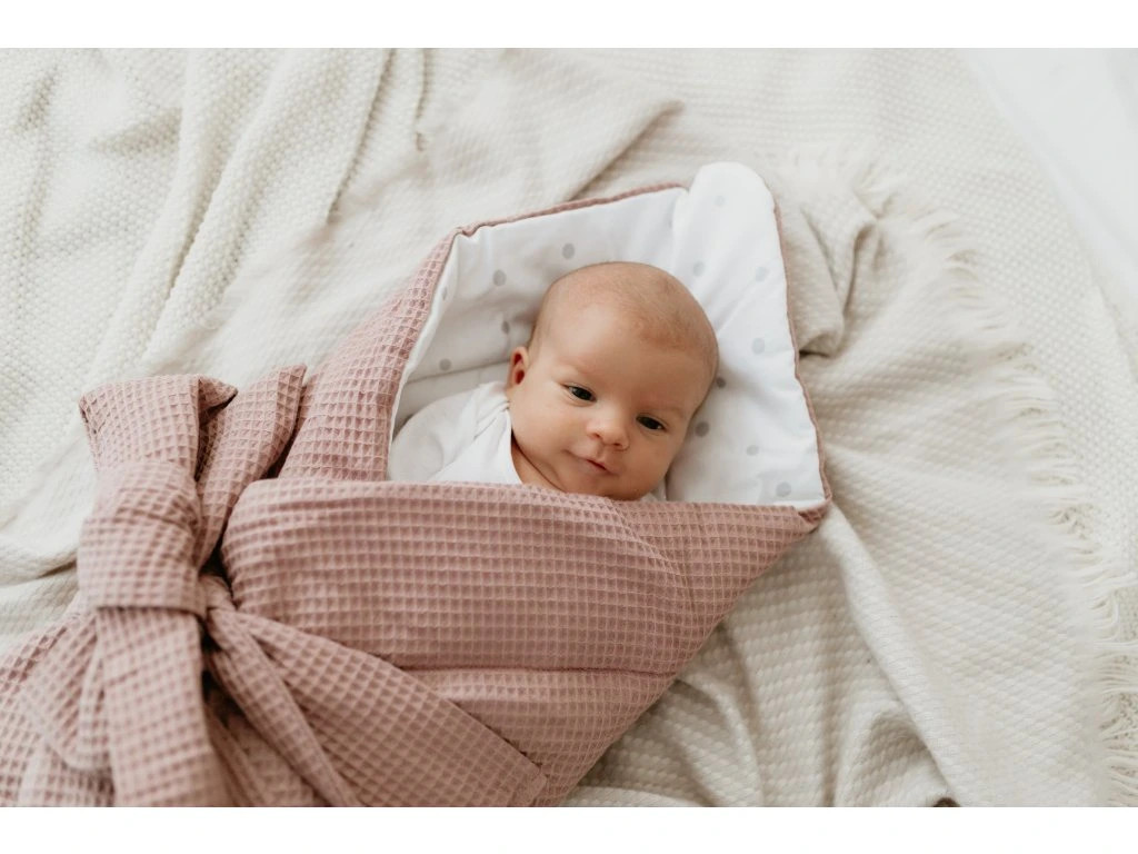 Sleepee újszülött baba pólya, gofri szövésű waffle pamut anyagból, rózsaszín (Pink) színben