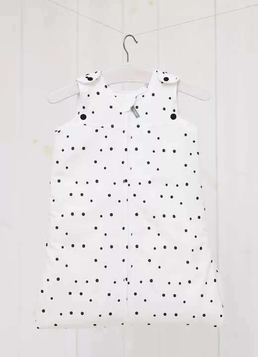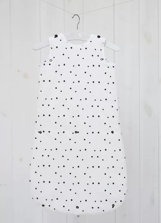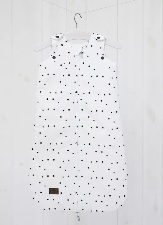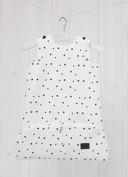 Sleepee Grow Up állítható baba hálózsák 0-24 hó, bélelt pamut, fekete pöttyös (Black Dots) minta (2.5 TOG)