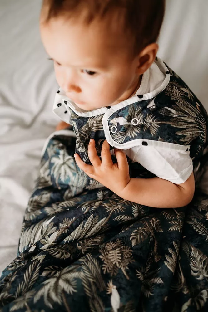 Sleepee Grow Up állítható baba hálózsák 0-24 hó, bélelt pamut, zöld eukaliptusz (Eucalyptus) minta (2.5 TOG)