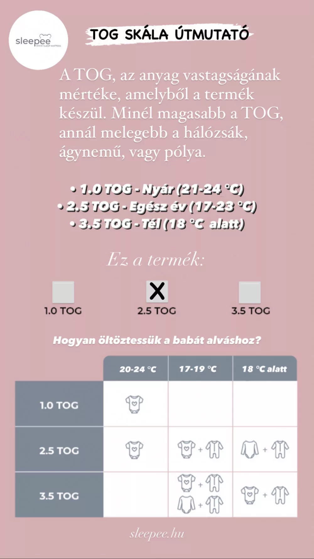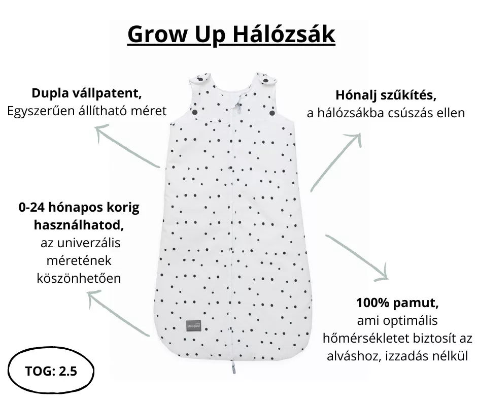 • A hálózsák vásárlásokkal kapcsolatos megtakarítás, amiből a gyermek folyamatosan kinő. Ezt a hálózsákot újszülött korától kezdve használhatod és garantáljuk, hogy nagyon sokáig tökéletes alvótársa lesz gyermekednek!