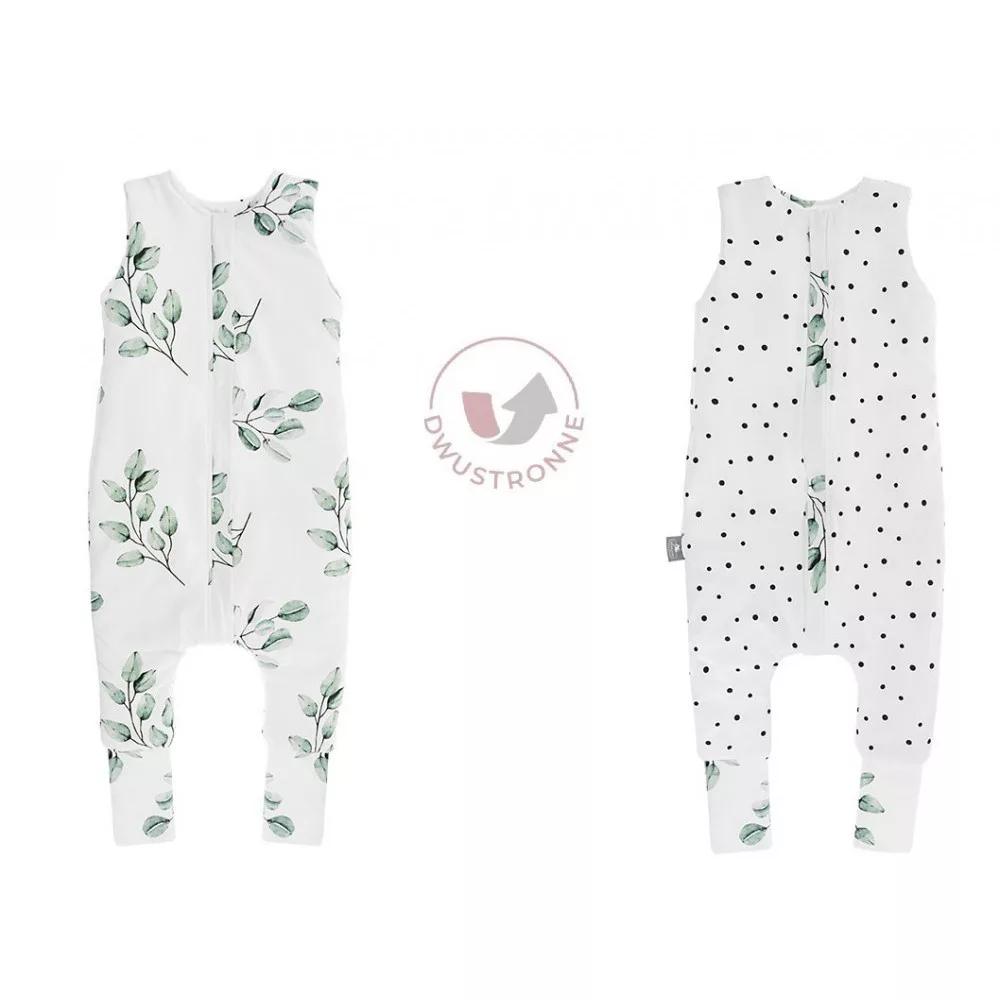 Sleepee kifordítható téli tipegő baba hálózsák 1-2 év (S), pamut borítás, zöld eukaliptusz és pöttyös minta (2.5 TOG)