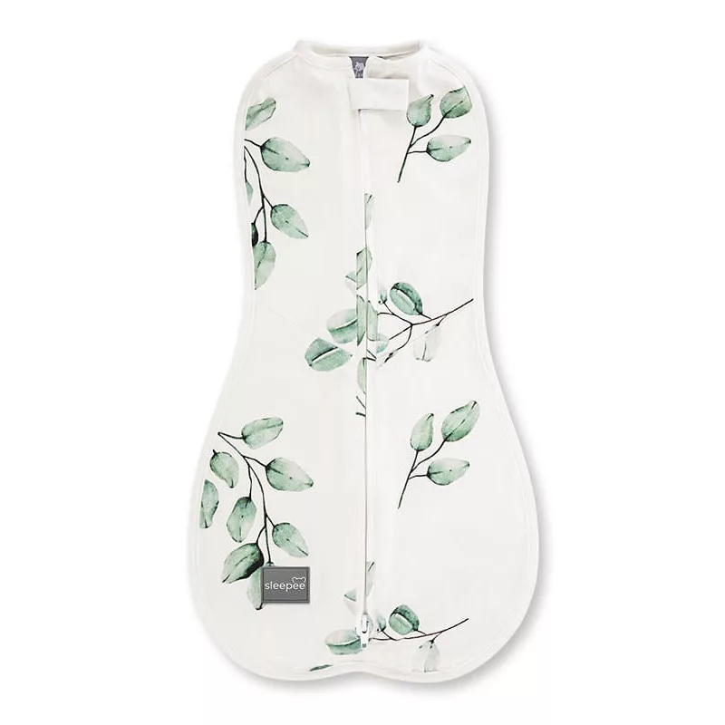 Sleepee First Step újszülött baba pólya, puha pamut anyagból, Eucalyptus zöld leveles mintával (0.5 TOG)
