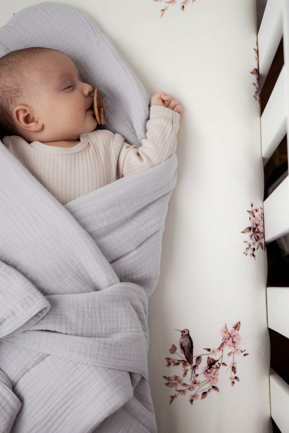 A finom és puha muszlin pólya a legjobb megoldás a forró és meleg napokon. Tökéletesen szabályozza a hőt és megakadályozza a túlmelegedést.
