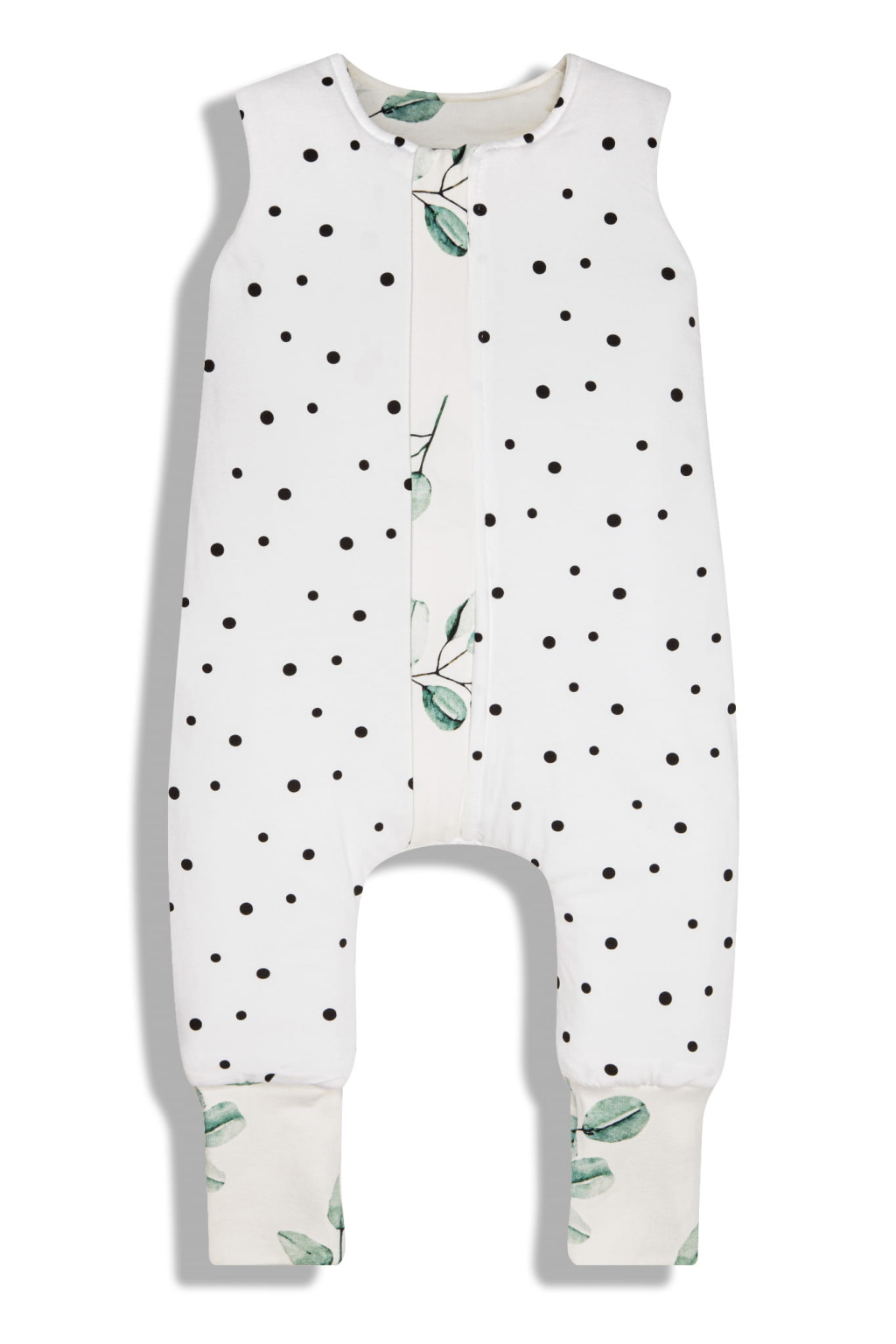 Sleepee kifordítható téli tipegő hálózsák lábbal 6-12 hó (XS méret), eukaliptusz Eucalyptus és pöttyös Black Dots minta (2.5 TOG)